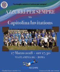 La squadra AZZURRI PER SEMPRE giocherà con una selezione ad inviti della CAPITOLINA RUGBY, anche per raccogliere fondi da destinare all’acquisto di materiale tecnico per un giovane club emergente individuato dal direttore tecnico della CAPITOLINA.