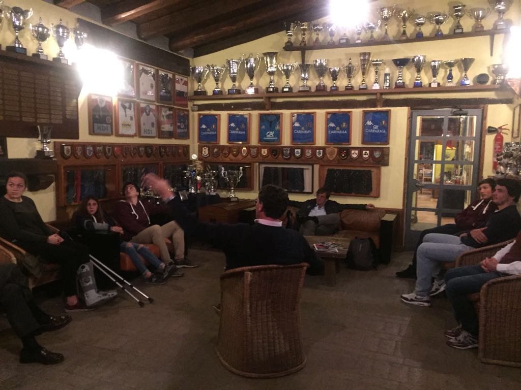 Inviati dal Consiglio si è tenuta lunedì 14 ottobre la “cena dei capitani” delle squadre seniores e giovanili della capitolina per la stagione 2017 – 2018. Di fronte al tabellone in Club House, che ricorda i nomi di chi li ha preceduti nel ruolo, il Presidente Giorgio Vaccaro ha voluto ricordare ai presenti che il capitano è una delle figure più importanti di una squadra di Rugby e non a caso il loro nome viene ricordato accanto a nomi dei soci fondatori. Il capitano non nasce capitano. Si può pensare che certe attitudini alla leadership siano iscritte nei geni, ma non è esattamente così. Le competenze richieste per amalgamare, regolare e animare un gruppo si possono insegnare e allenare. Ma queste non sono sufficienti per fare un buon capitano, non si può prescindere da un carisma personale che è, si, davvero innato. Requisiti fondamentali di un capitano sono l’assunzione delle responsabilità, la capacità decisionale, la comunicazione e tutto ciò che fa di un individuo un “attore” e non uno “spettatore”.