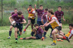 Semifinale di andata a Livorno per i nostri ragazzi dell’under 16 che, come da pronostico, si trovano ad affrontare una squadra molto fisica e che fa dell’aggressività un punto di forza. La tensione è alta (non potrebbe essere diversamente visto la posta in palio) e i capitolini iniziano un po’ timorosi e contratti. Ci mettiamo troppo ad adattarci al metro arbitrale regalando troppi calci di punizione e impegniamo troppi giocatori sui punti d’incontro lasciando spazi ai giocatori livornesi. Su un mancato intervento difensivo subiamo la loro unica meta e chiudiamo il primo tempo sotto 13 a 0. I ragazzi però non si abbattono, restano concentrati e consapevoli delle loro capacità e reagiscono positivamente alle difficoltà. L’intensità di gioco è molto alta e grazie ai corretti comportamenti riusciamo a marcare 2 mete e riportarci sotto nel punteggio che ora dice 13 – 12. Concediamo ancora due possibilità di andare per i pali ai ragazzi bianco-giallo-rossi che ne sfruttano una e si portano a +4. Gli ultimi minuti ci vedono a ridosso della loro linea di meta, ma la fretta ci porta a disunirsi e così il risultato non cambia e l’arbitro fischia la fine del match.